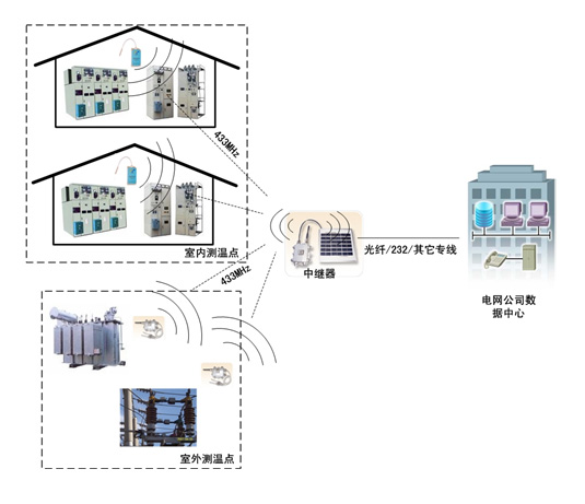 在電力系統(tǒng)中,高壓開(kāi)關(guān)、GIS(氣體絕緣變電站)等高壓電器和載流母線等電力設(shè)備在負(fù)載電流過(guò)大時(shí)會(huì)出現(xiàn)溫升過(guò)高,最后能使相鄰的帶電部件性能劣化,甚至擊穿,根據(jù)電力安全監(jiān)督部門(mén)提供數(shù)據(jù)分析,全國(guó)電力單位每年因?yàn)楦邏洪_(kāi)關(guān)、母線溫度過(guò)高引發(fā)的重大事故上千起,給生產(chǎn)和經(jīng)營(yíng)造成巨大經(jīng)濟(jì)損失。通過(guò)監(jiān)測(cè)母線接點(diǎn)、高壓電纜接頭、高壓開(kāi)關(guān)觸點(diǎn)溫度的運(yùn)行情況,可有效防止高壓輸、變電故障的發(fā)生,為實(shí)現(xiàn)安全生產(chǎn)提供有效保障。